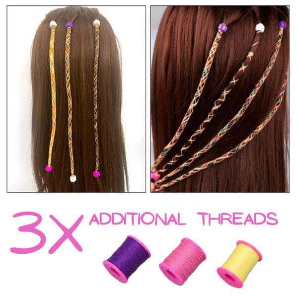 Contenuto della confezione: 1x Whizzbraid Knitting Aid, 12x fermagli per capelli, 3x filo (filo giallo, rosa e viola), 2x accessori per la facilità d’uso