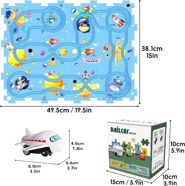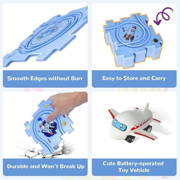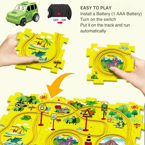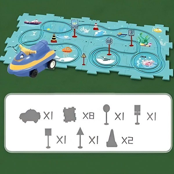 Il set comprende diversi pezzi di pista che consentono ai bambini di creare facilmente diversi layout, migliorando la loro creatività e la capacità di risolvere i problemi.